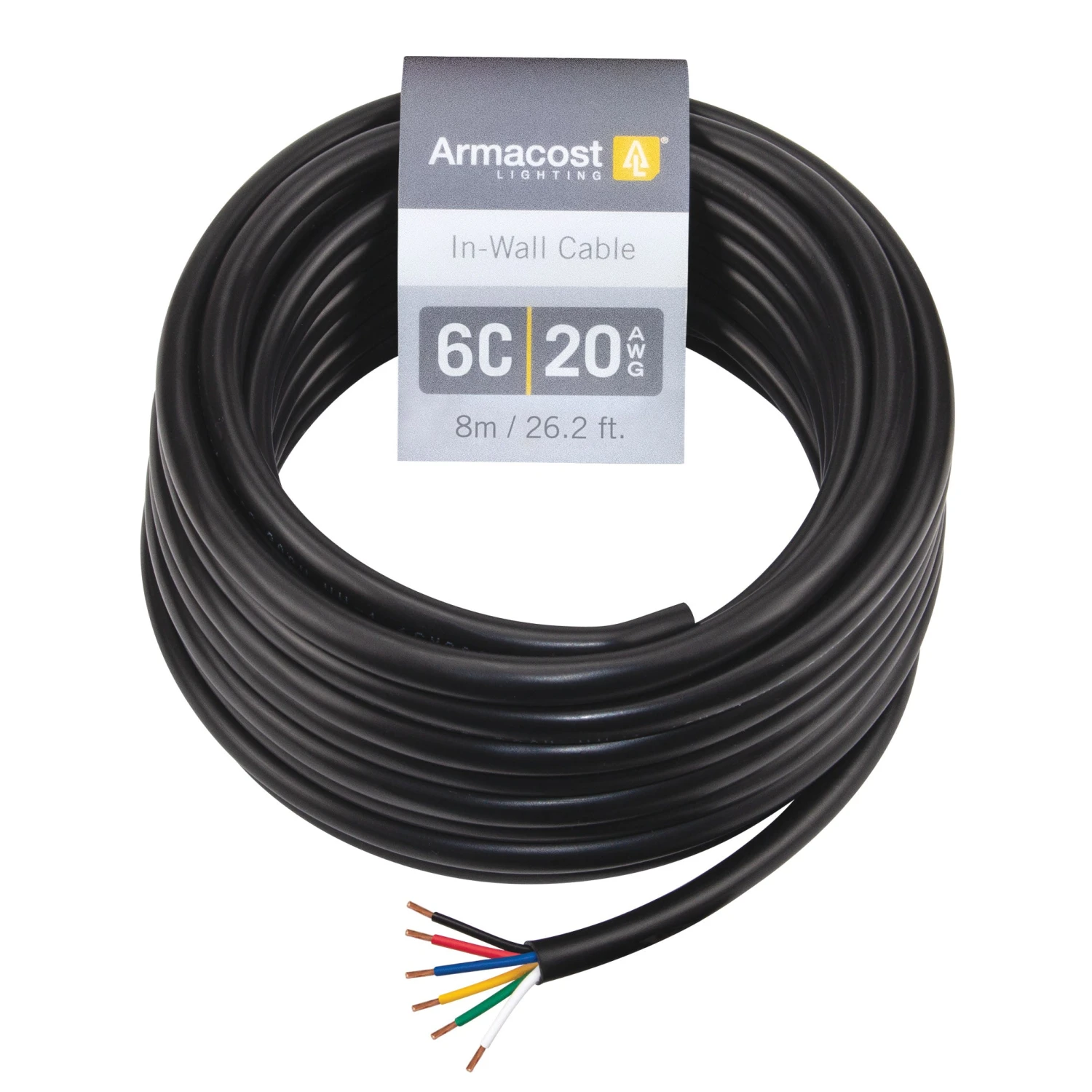 20 AWG In Wall Cable for 6C LED lighting from Armacost Lighting is optimized for use with RibbonFlex Pro RGB+WW LED strip light. The 20-gauge cable features a PVC jacket for in-wall installation. Made using premium quality copper and UL rated, flame resistant PVC. The 20 gauge wiring is 26 ft. (8m) long and is easy to strip, cut and reconnect for custom LED light, LED driver, transformer or other custom lighting projects.