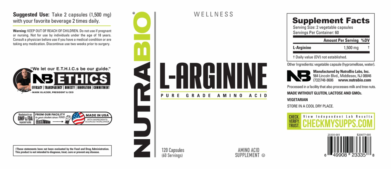 Our free-form L-Arginine is HPLC verified ultra-pure for maximum bioavailability and effectiveness. Arginine (or L-Arginine) is a crystalline free-form amino acid involved in numerous areas of human biochemistry, including muscle metabolism, hormone secretion, ammonia detoxification, and the immune system. Arginine promotes nitric oxide production, which helps support circulation and muscles.