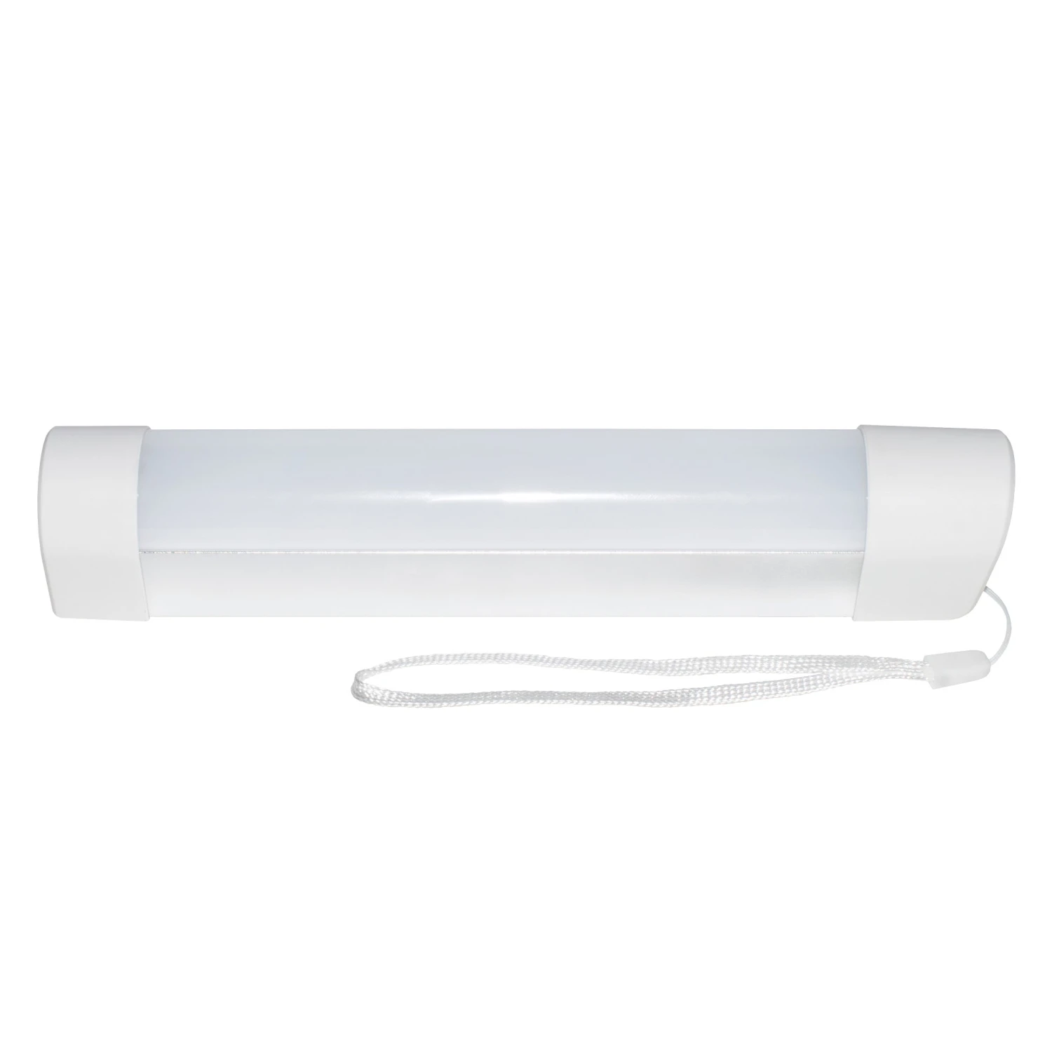 The Armacost Lighting LED portable work light can quickly and easily illuminate any area. The ultra-bright LEDs have four different modes: high brightness white, medium brightness white, low brightness white, and a flashing red strobe. With versatile magnetic housing, the LED flashlight can be conveniently used hands-free. It has dual-purposes emergency uses; the flashing red mode can be used to signal caution or distress, and it also doubles as backup mobile device charger. The battery never needs to be replaced in the rechargeable LED task light, and it includes a removable wrist lanyard and a standard tripod screw mount.