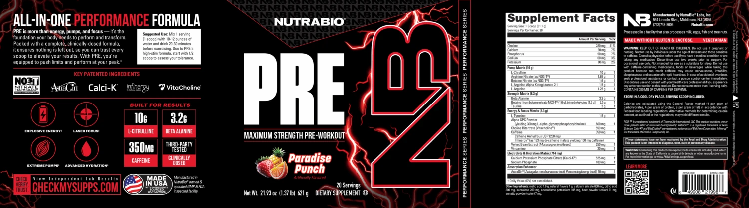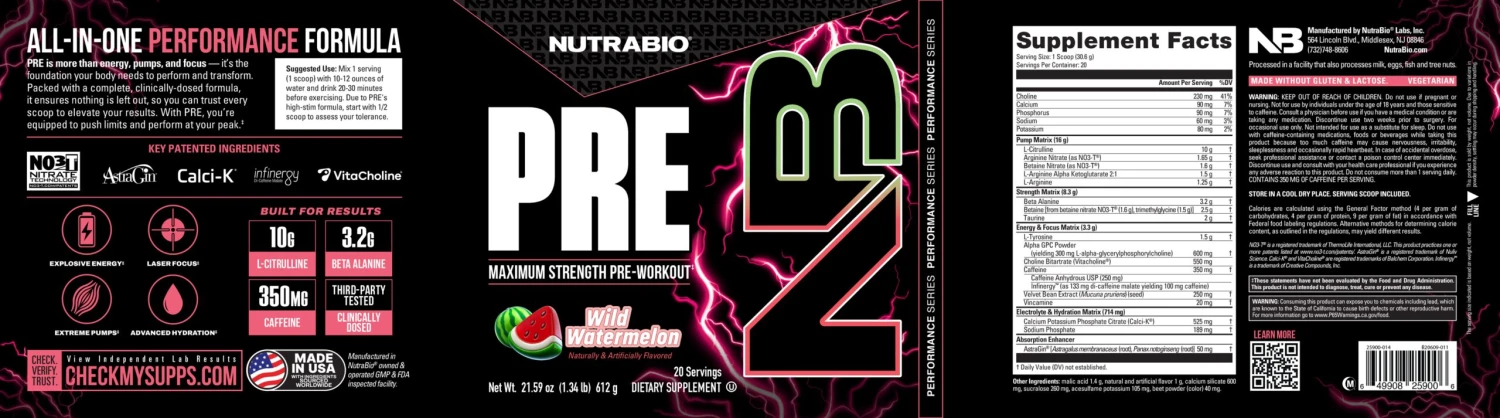 Unlock a new level of training you’ve never experienced with a maximum-strength pre-workout designed to fuel your performance from start to finish. NutraBio PRE is packed with clinically dosed and patented ingredients. That said, PRE isn’t for everyone.