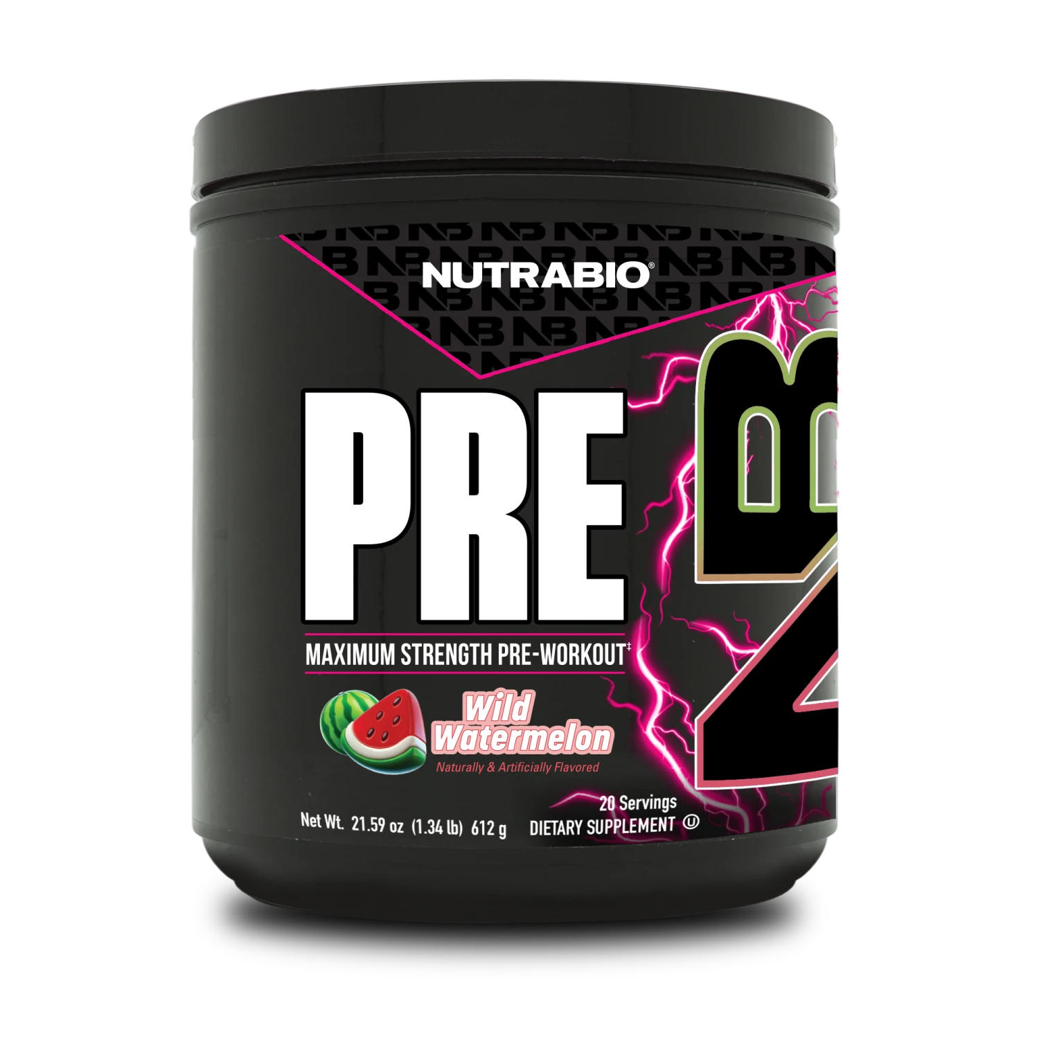 NutraBio PRE delivers explosive energy, razor-sharp focus, muscle-pumping blood flow, endurance-boosting support, and optimized hydration levels to help you get the most out of your time in the gym. Whether you’re chasing new PRs or looking for the extra edge in your training, PRE ensures your workouts will never be the same.