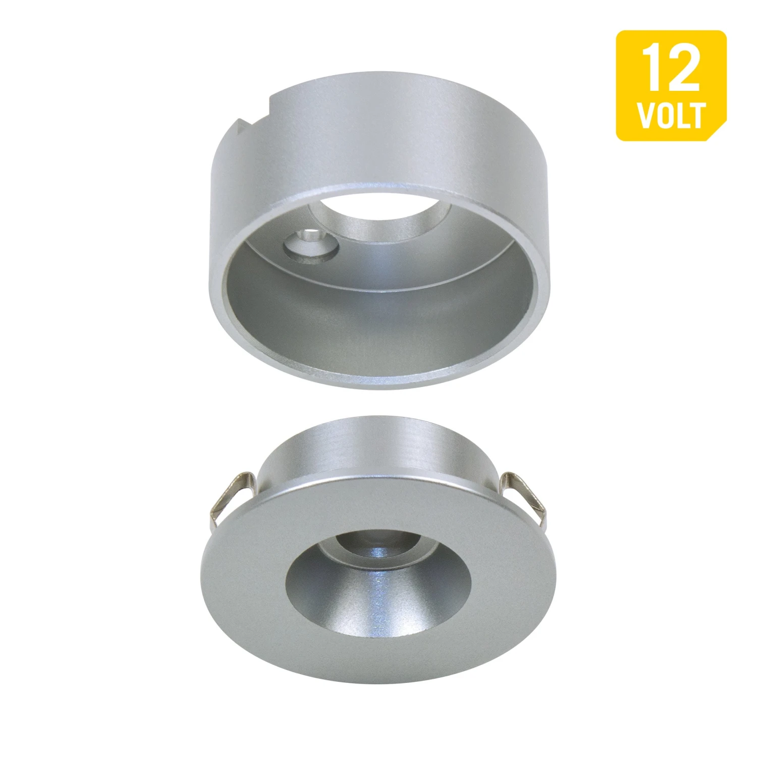 The PureVue Mini Dimmable LED Puck Lights from Armacost Lighting are a unique small LED puck light solution for surface or recessed under counter or cabinet lighting.  Available in flat and angled models, the hardwired puck lights feature rugged aluminum construction and feature a durable matte silver finish. The flat model includes a removable trim ring that allows for either a surface or recess mount, ideal for under cabinet lighting. The angled model features a 20° mounting surface that allows you to focus light directly at your desired spot, perfect for cabinet lights. The mini LED puck lights are 100% dimmable when used with Armacost Lighting LED dimmers. Requires a 12 volt LED power supply, sold separately.