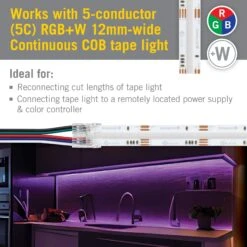 SureLock Pro 6 Pin Strip to Wire Connectors from Armacost Lighting work with 6-conductor (6C) multicolor RGB+WW 12mm LED tape light. Create solderless connections between cut lengths of LED strips or between tape light and a LED driver. Great for large or custom under cabinet and accent LED lighting installations.