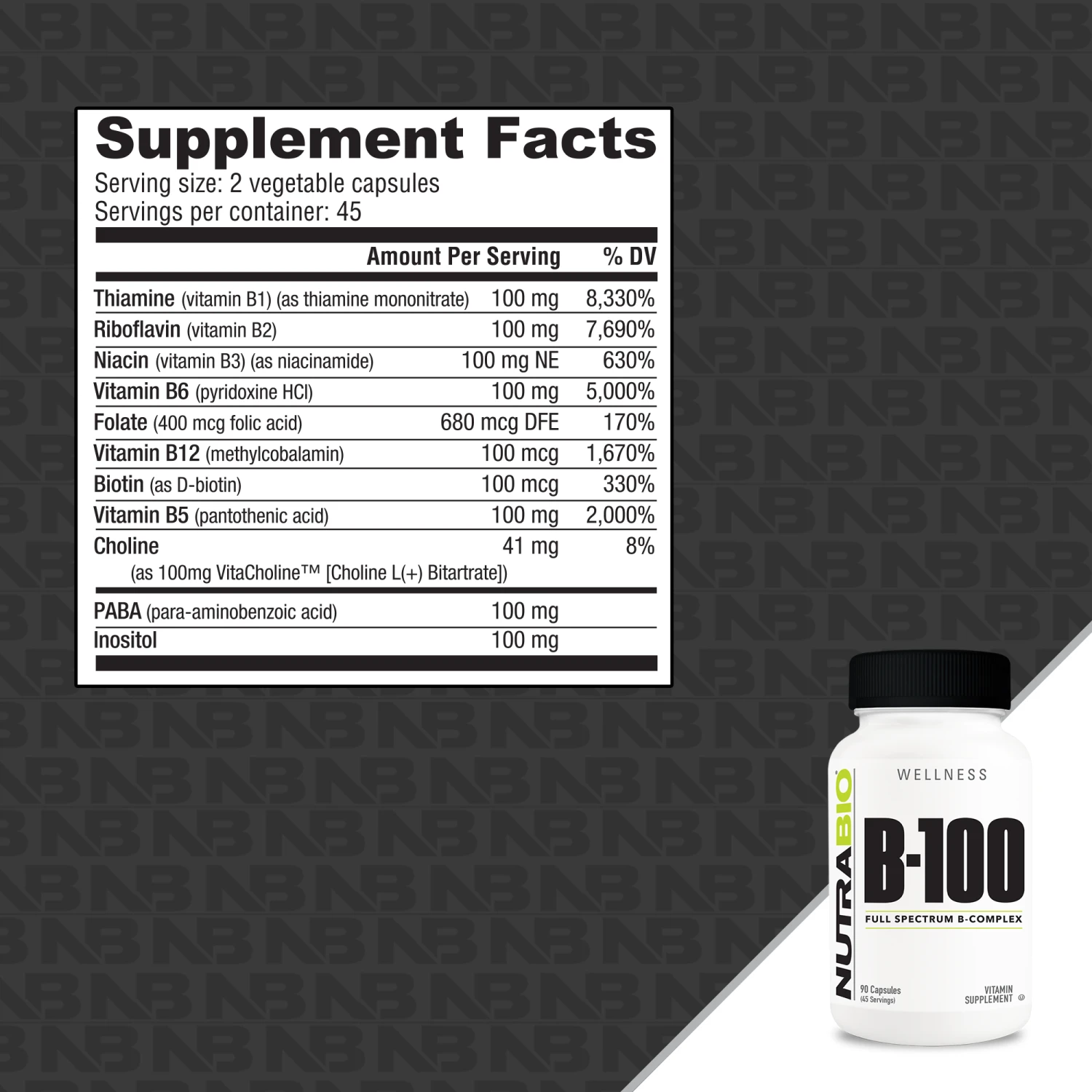 The NutraBio Vitamin B-100 Complex is designed to support various aspects of health, from energy levels and stress management to immune system function and blood sugar regulation. By encompassing a range of B vitamins, this complex ensures that your body gets the essential nutrients it needs for optimal function and well-being.