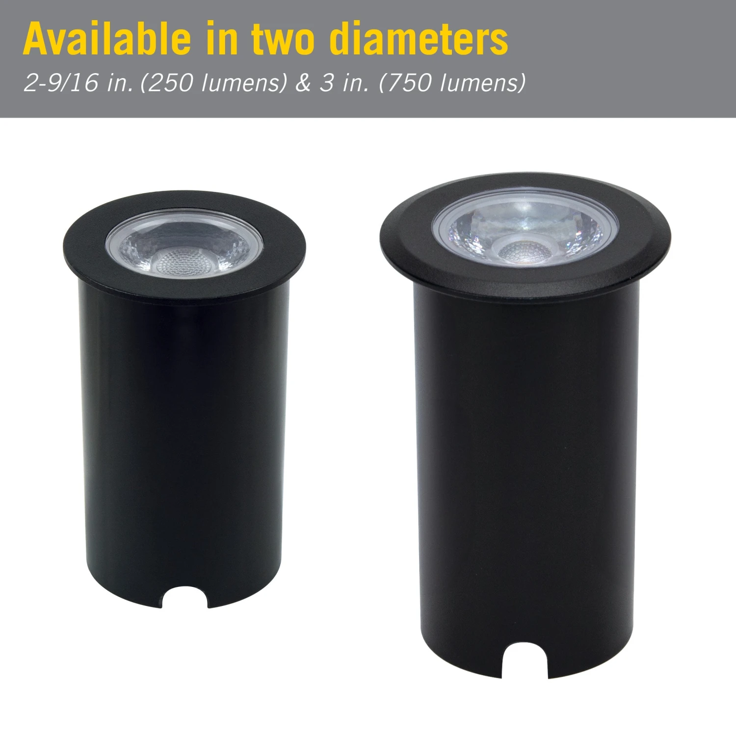 | Size/Brightness | 2.5"D (250 Lumens), 3"D (750 Lumens) |